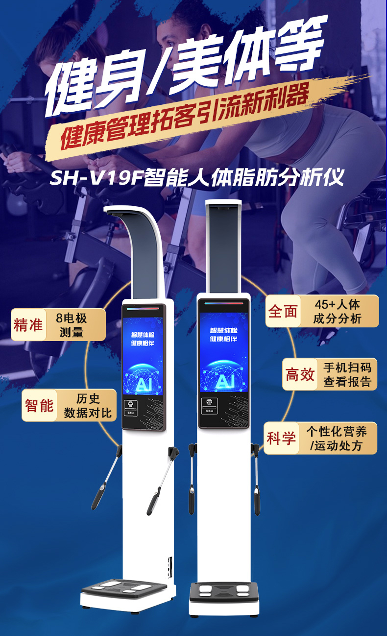 上禾科技,作為一家專注于健康一體機生產(chǎn)的廠家,其生產(chǎn)的人體成分分析儀在市場上備受矚目。其中,SH-V19F型號的人體成分分析儀更是以其高精度、多功能和人性化的設計贏得了廣泛好評。這款設備采用8電極測量,通過BIA法測量人體電阻抗值來評估人體成分,可測量的指標包括但不限于總水分、蛋白質(zhì)、無機鹽、體脂肪量、體重、肌肉量、骨骼肌肉量、身體質(zhì)量指數(shù)(BMI)、體脂肪率、腰臀比等。此外,人體脂肪分析儀外觀設計符合人體工程學,使用體驗極佳。